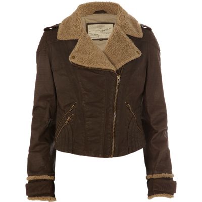 1. Dark brown leather aviator jacket