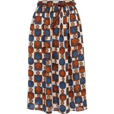 4. Cream print midi belted skirt