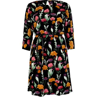 6. Black print belted dress